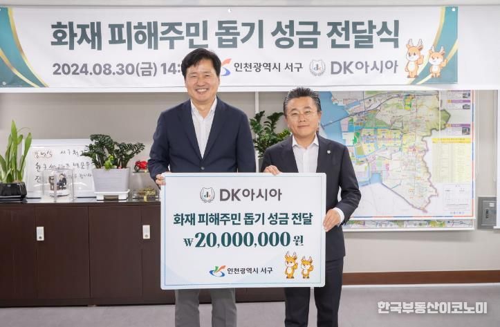 한국부동산이코노미 도경수 기자 | 인천 서구는 8월 30일, DK아시아로부터 이웃돕기 성금 2,000만 원을 전달받았다고 밝혔다.