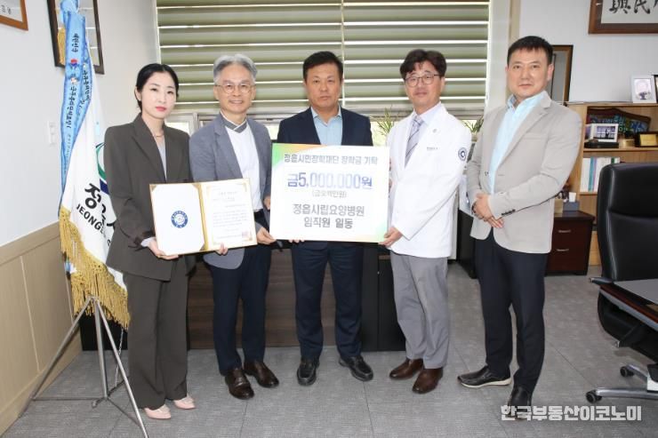 4일 정읍시립요양병원 임직원은 지역 인재 육성을 위해 시민장학재단에 500만원의 장학금을 기탁했다.