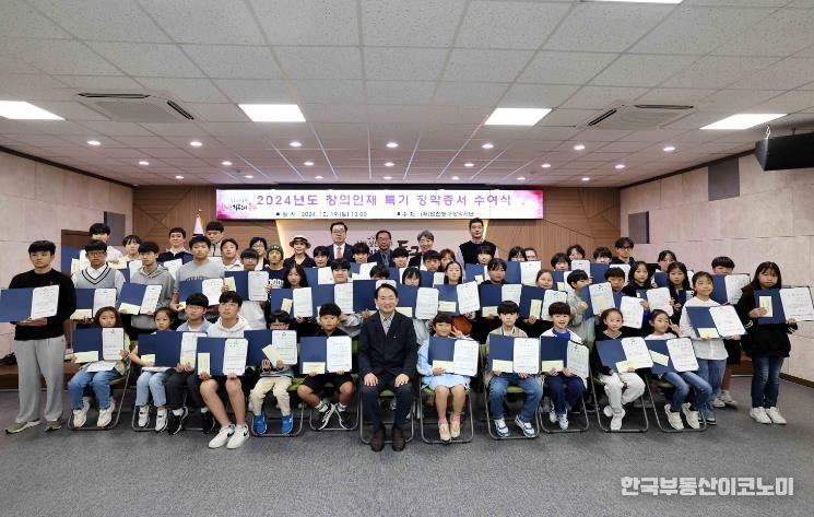 한국부동산이코노미 도경수 기자 | (재)인천동구장학재단은 지난 19일 ‘2024년도 창의인재특기 장학생 장학증서 수여식’을 구청 소나무홀에서 개최했다고 밝혔다.