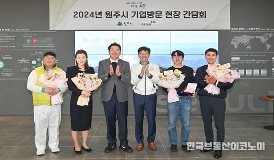 한국부동산이코노미 도경수 기자 | 원강수 원주시장은 지난 28일 지역 대표 수출기업 ㈜서울에프엔비를 방문하여 오덕근 대표이사를 비롯한 임직원들과 간담회를 개최했다.
