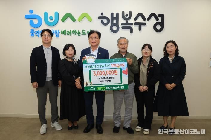한국부동산이코노미 도경수 기자 | 수성미래교육재단은 고산느티나무장학회가 미래인재 육성과 지역 교육발전을 위해 장학금 3백만원을 기탁했다고 30일 밝혔다.