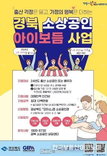 신청은 경북도 모바일 앱 ‘모이소’에서 할 수 있으며, 자격 요건 및 기타 자세한 사항은 경북도 소상공인 상담센터로 문의하면 된다.