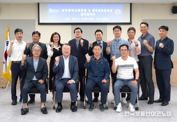 한국부동산이코노미 기자 | 광주광역시체육회와 광주체육중학교는 17일 15시 광주광역시체육회 2층 중회의실에서 학생선수 육성과 양기관의 발전을 위한 업무협약을 체결했다고 밝혔다.