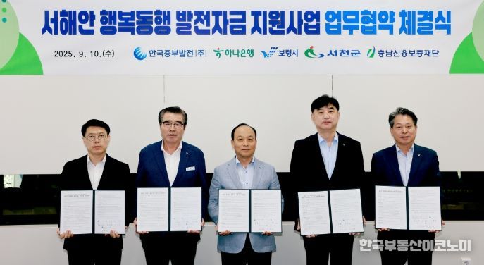 한국부동산이코노미 도경수 기자 | 보령시는 10일 한국중부발전, 하나은행, 충남신용보증재단 등과 소상공인 경영 안정화를 위한 ‘서해안 행복동행 발전자금 지원 업무협약’을 체결했다고 밝혔다.