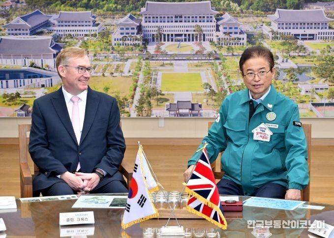 한국부동산이코노미 도경수 기자 | 이철우 경상북도지사는 3일 도청을 방문한 콜린 크룩스(Colin Crooks) 주한 영국대사 내외와 만나, 경주 APEC 정상회의의 성공적 개최 협력 방안과 함께 산업·문화·교육 등 다양한 분야의 교류 확대를 논의했다.