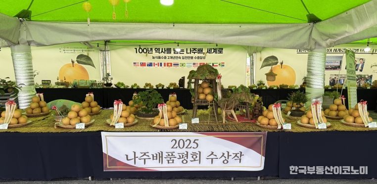 한국부동산이코노미 도경수 기자 | 전라남도 나주시가 ‘2025 나주영산강축제’와 연계해 열리고 있는 ‘나주농업페스타’ 현장에서 나주배 품평회 수상작을 비롯한 다양한 전시와 체험 프로그램을 선보이며 시민과 관광객의 발길을 사로잡고 있다.