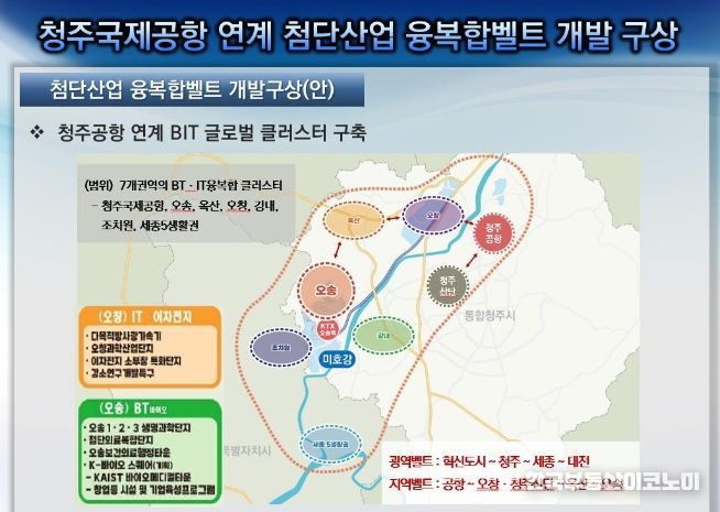 이번 연구용역은 국내 최고의 IT, BT, ET산업의 융‧복합 중심지로 발전하기 위하여 첨단산업 경쟁력 강화와 정주여건 조성, 교통망 확충, 청주공항 활성화 및 연계체계 확보 등을 위한 개발 구상을 위해 마련됐다.