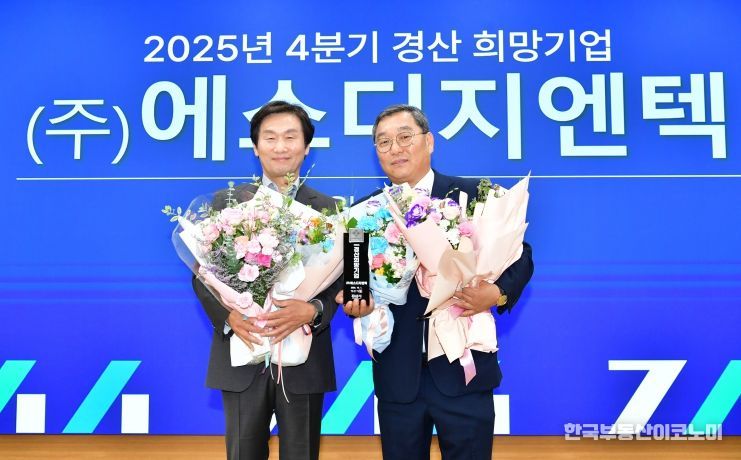 한국부동산이코노미 도경수 기자 | 경산시(시장 조현일)는 (주)에스디지엔텍을 2025년 4분기 경산 희망 기업으로 선정하고 1일 정례회에서 트로피 시상 및 현판 전달식을 가졌다.