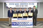 한국부동산이코노미 도경수 기자 | 대구 달성군이 안전한 일터 조성에 모범적인 우수 기업을 선정해 인센티브를 지원하는 등 산업재해 예방에 총력을 다하고 있다. 달성군은 대구상공회의소와 공동으로 지난 26일 ‘2025년 달성군 산업안전보건 우수기업 인증서 및 현판 수여식’을 개최하고, 안전한 일터 만들기에 솔선수범한 관내 4개 기업에 인증서와 현판을 전달했다. 올해 우수기업으로 선정된 곳은 ㈜대지메카트로닉스, 미래첨단소재(주), ㈜비엠아이, 일성산업 등 총 4곳이다. 이들 기업에는 인증과 함께, 근로환경 개선을 위한 사업비가 최대 700만 원까지 지원된다. 해당 지원금은 근로시설 및 안전장비 개선 등에 활용될 수 있다. ‘산업안전보건 우수기업 인증사업’은 달성군과 대구상공회의소가 지난 2023년부터 공동 추진해온 사업으로, 산업재해 예방을 위한 민관 협력 모델로 주목받고 있다. 양 기관은 안전하고 건강한 작업환경을 구축하는 기업을 매년 선정해 인증하고, 인센티브를 제공해 오고 있다. 최재훈 달성군수는 “경제가 침체돼 어려운 이때에도 안전한 일터 만들기에 앞장서 온 기업인 여러분의 노고에 감사드린다”며