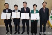 한국부동산이코노미 도경수 기자 | 산청군은 29일 함양군청 대회의실에서 ‘대전~남해선 철도건설 사업의 제5차 국가철도망 구축계획 반영을 위한 공동 협약’을 가졌다고 밝혔다. 이번 협약에는 산청군을 비롯해 옥천군, 무주군, 장수군, 함양군, 하동군, 남해군이 참여해 연대 대응에 나섰다. 특히 철도 인프라 부족으로 교통 소외를 겪는 지역의 균형발전 필요성을 공유하고 덕유산과 지리산, 남해안을 연결하는 관광·경제권 구축과 지방소멸 위기 대응을 위해 힘을 모으기로 했다. 또 △철도 사각지대 해소 △관광벨트 구축 △고용 창출과 지역경제 활성화 △친환경 교통수단 확보 등을 담은 공동 건의문을 중앙정부에 전달하는 등 대전~남해선 철도건설 사업이 제5차 국가철도망 구축계획에 반드시 반영될 수 있도록 적극 협력하기로 했다. 이에 따라 7개 군은 실무협의체를 중심으로 공동 대응을 강화해 중앙부처 건의와 대국민 홍보 등 다각적인 노력을 이어간다는 방침이다. 이승화 산청군수는 “대전~남해선 철도는 산청만의 철도가 아닌 남부지역 전체가 함께 성장할 수 있는 모두의 철도다”며 “7개 군이 힘을 모아 끝까지